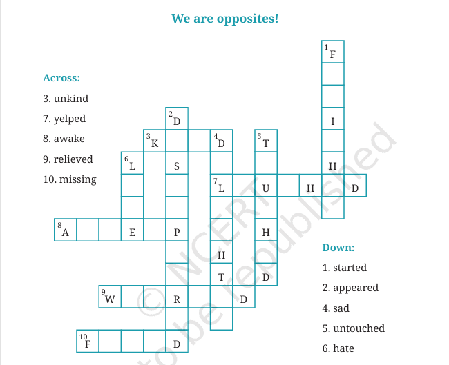 Now, take help from the words given as hints and fill up their opposites in the puzzle. (Note: All the words are from the story you have just read.)