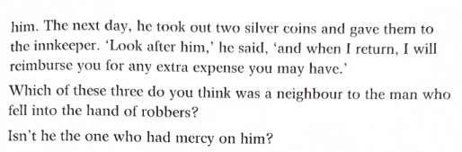 He gave money to the innkeeper so that the traveller could be looked after until he got better.b. This shows he was kind, caring and generous. True or False?